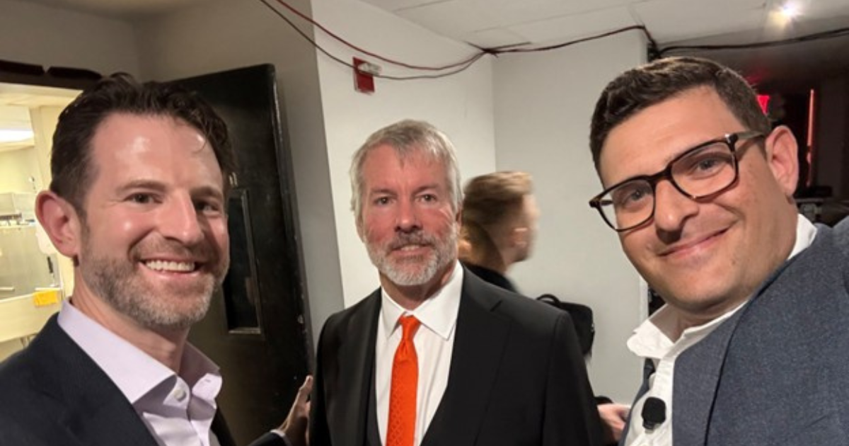 Kyle and Moish pictured backstage with Michael Saylor before their presentation.